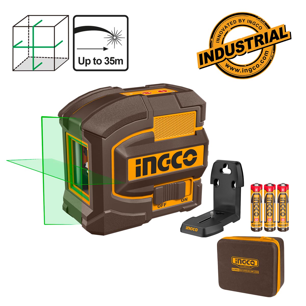 INGCO Αυτοαλφαδιαζόμενο Πράσινο Laser Σταυρού 2 Ακτίνων