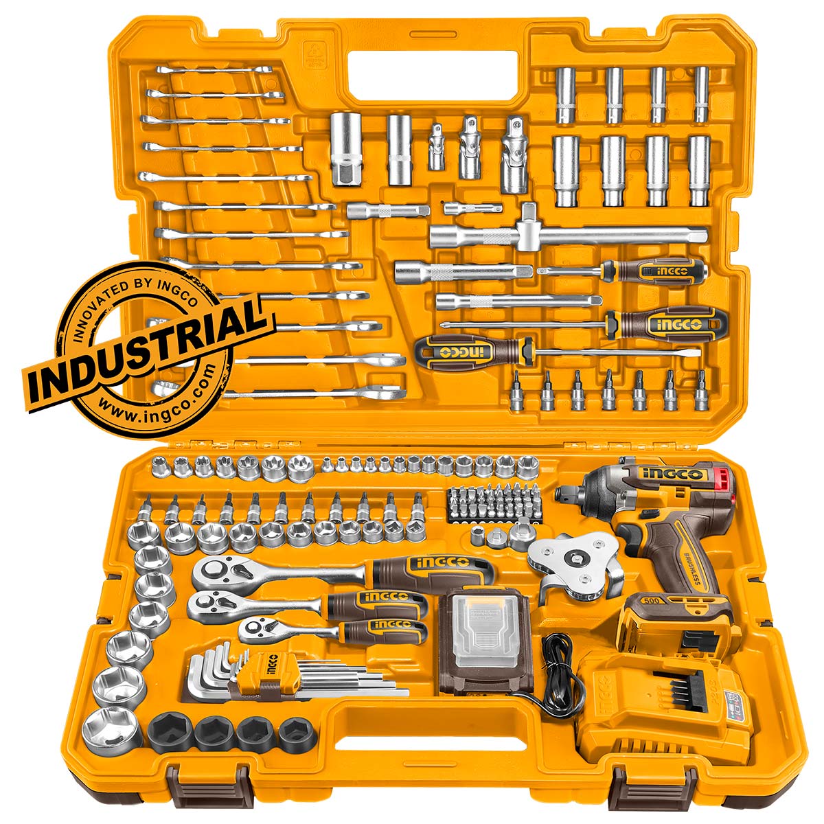 INGCO Εργαλεία Χειρός + Μπουλονόκλειδο Κρουστικό Μπατ. 20V Li-Ion 500-650Nm Σετ 152 τεμ.