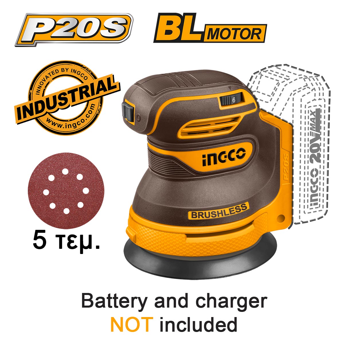 INGCO Περιστροφικό Τριβείο Χούφτας 125mm Μπαταρίας 20V Li-Ion SOLO