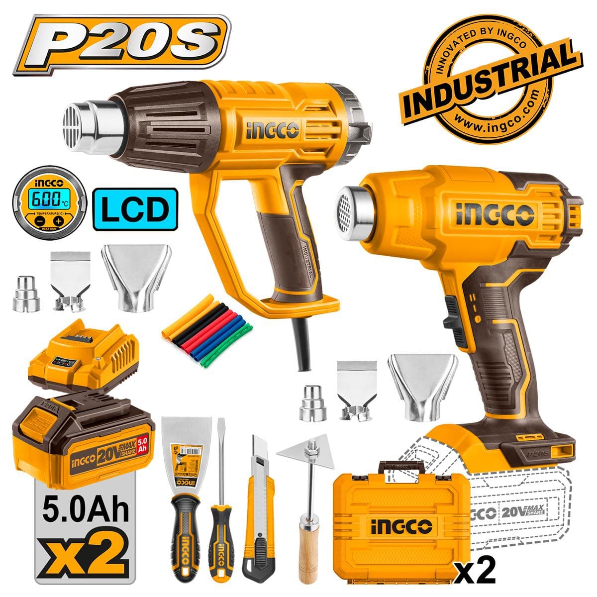 INGCO Πιστόλια Θερμού Αέρα Σετ 2 τεμ.